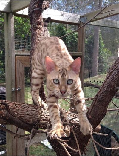 Breeders of leopard looking Bengal cats with spots and rosettes in brown and snow. Gold Coast, Australia.